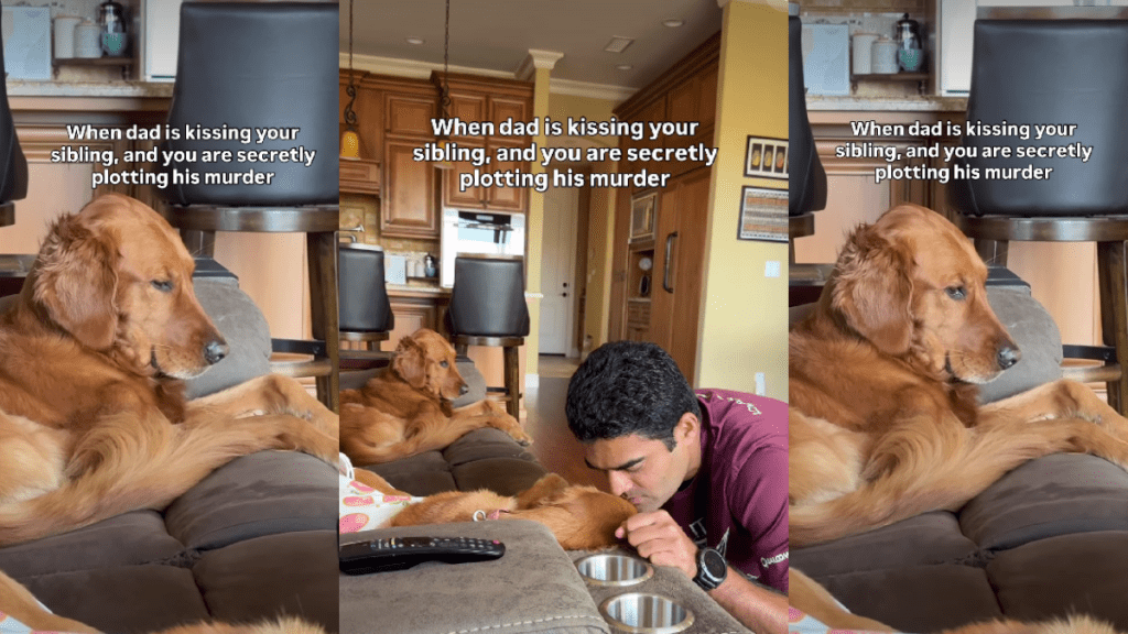 Layla is going viral for the funniest kind of side-eye. In a jealous Golden Retriever clip shared by @layla_the_goldengirl, the pup freezes on the couch as her sibling gets all the attention. The moment plays out like a tiny drama, complete with a suspenseful soundtrack and a caption that makes the jealousy even funnier. Viewers are now cracking up at how “calm” Layla looks while clearly plotting her next move.